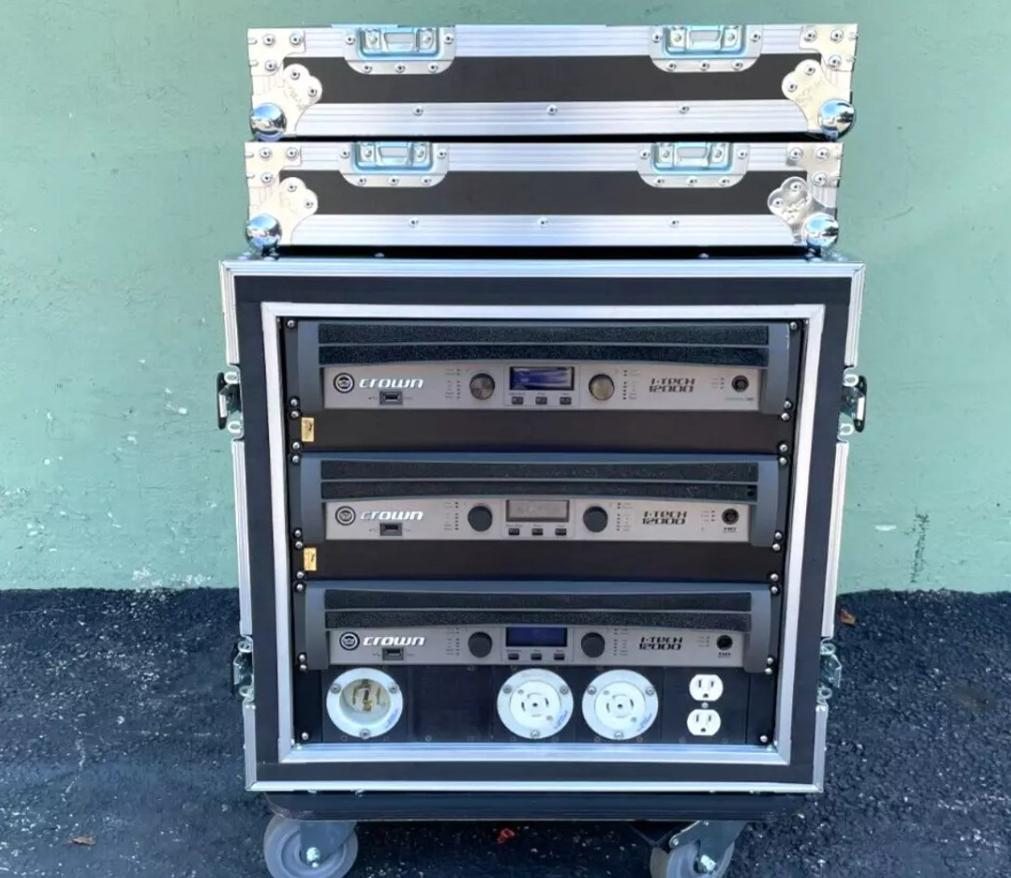 This turnkey amplifier rack includes (3) Crown I-Tech 12000HD power amplifiers professionally installed in a tour-grade road case, complete with a rear speaker patch panel, power distribution unit, and all internal wiring. The system has been fully tested and is ready for immediate deployment in high-output live sound setups.