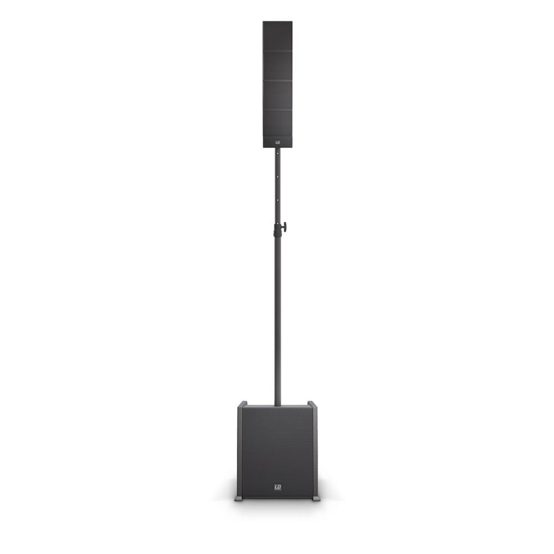 LD Systems CURV 500 ES Portable Array System with Distance Bar and Speaker Cable, Entertainer SetThe LD Systems CURV 500 ES Portable Array System is a versatile and high-performance sound system perfect for small events, conferences, and meetings. This entertainer set includes a powerful 10″ bass reflex subwoofer and an easily configurable array system with four interlocking satellites. Delivering a remarkable 460 watts RMS power and a maximum sound pressure level of 128 dB, the CURV 500 ES ensures clear, detailed, and dynamic audio for any occasion.The compact and transport-friendly CURV 500 is more than just a sound system; it is a scalable array solution designed for both mobile and fixed applications. Thanks to LD System’s proprietary WaveAhead technology, each array satellite hosts one 4″ driver and three 1″ drivers, providing a well-defined and coherent sound experience. Whether you’re setting up for a small gig, a conference meeting, or a DJ event, the CURV 500 ES is engineered to deliver superior audio quality and flexibility.Equipped with a built-in 4-channel mixer, DFX, Bluetooth technology, and a SmartLink plug & play adapter, this system offers universal mounting options and easy setup. The durable, lightweight aluminum unibody array elements ensure longevity and effortless transportation. For anyone seeking a premium portable array system that combines power, portability, and high definition audio performance, the LD Systems CURV 500 ES is an unparalleled choice.Key Features