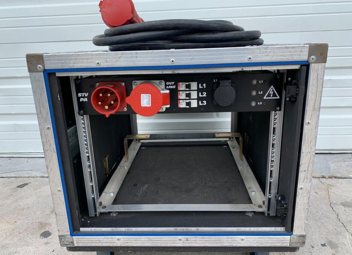 Durable 9U shock-proof amplifier rack including power distribution and power cable, designed to protect and power your audio equipment during transport and use.