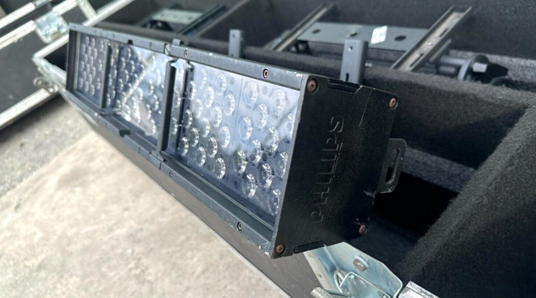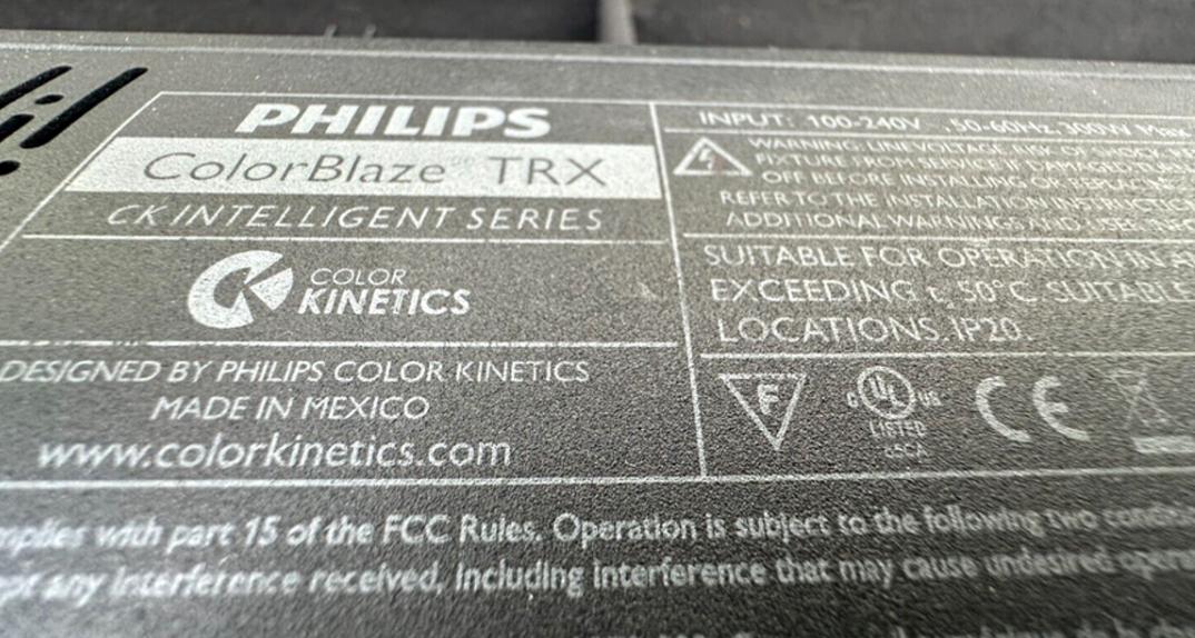 This lot includes 6 Phillips Color Kinetics Colorblaze 72 RGBAW LED 2-foot strips in a sturdy protective case. Designed for architectural and entertainment lighting, the Colorblaze 72 delivers vibrant RGBAW color mixing with exceptional brightness and smooth dimming. Ideal for signage, accent lighting, and creative installations.