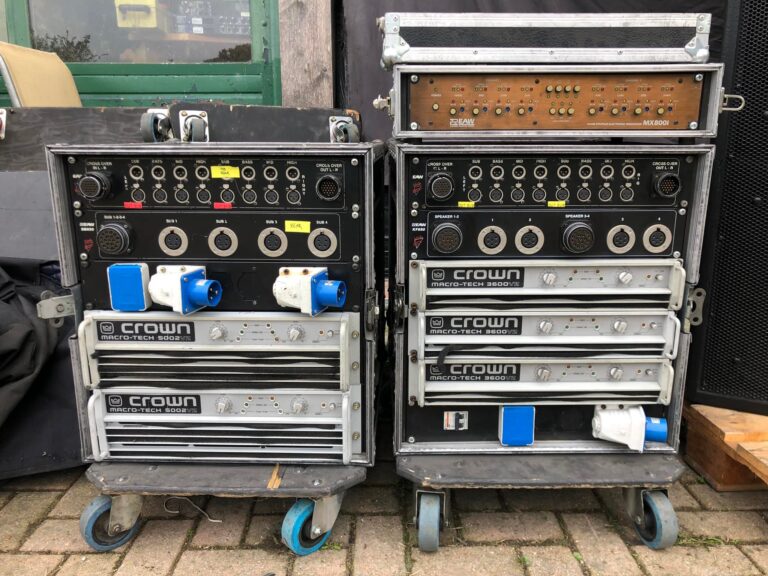 1 × Flightcase with 2 × Crown Macro-Tech VZ5002 amplifiers + patch panel