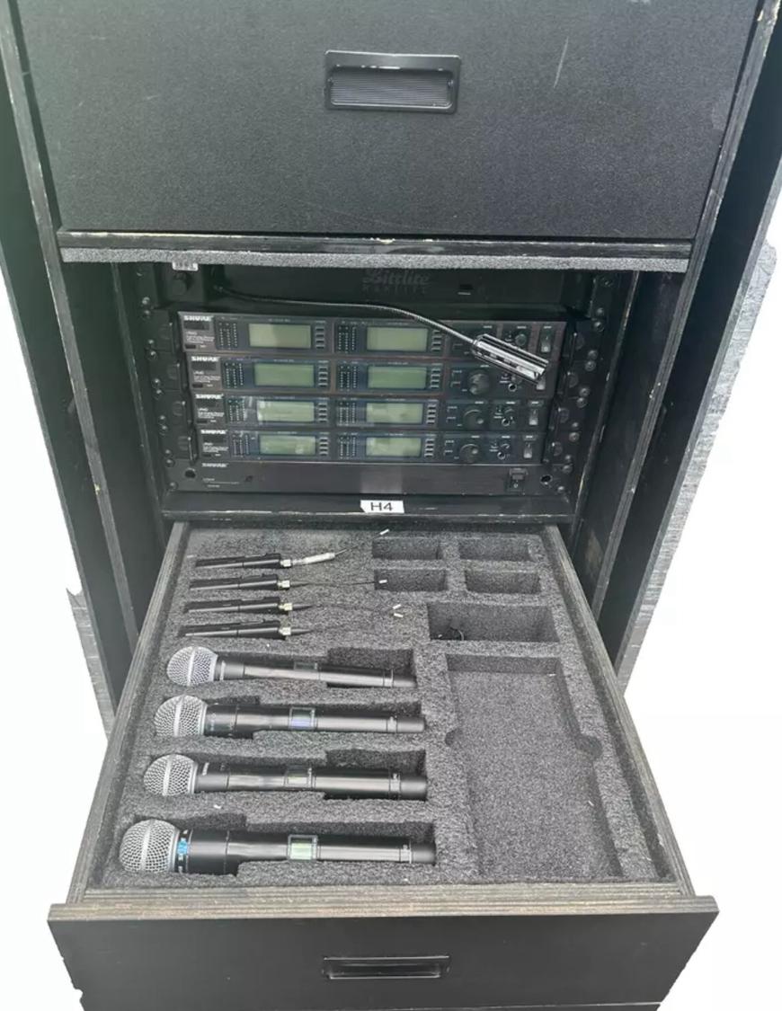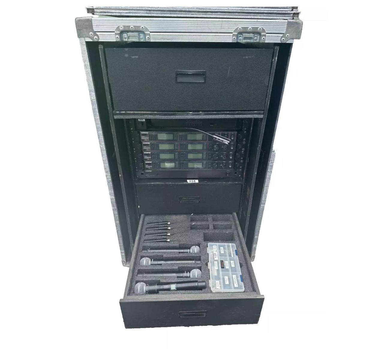 •4x Shure UR4D Dual Wireless Receivers (H4) – 8 total channels